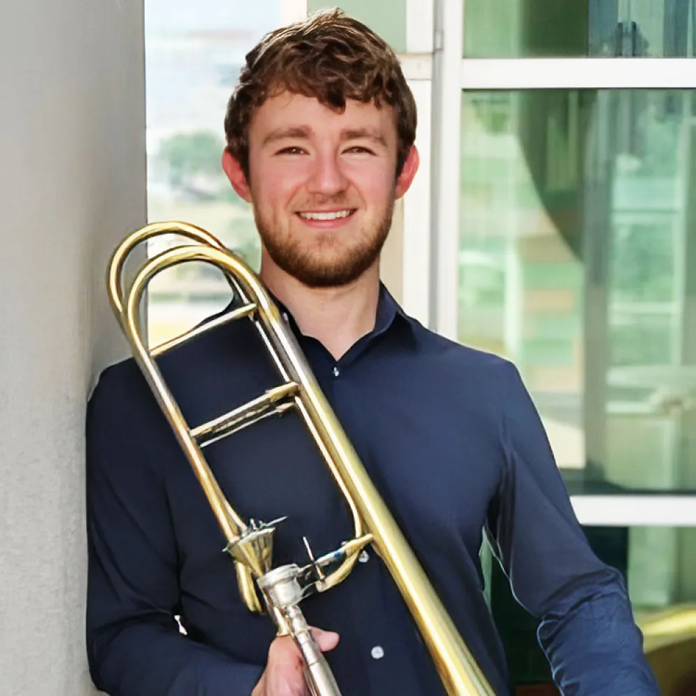 Josh Stout is a trombonist and music educator based in Austin, TX. He is the trombone teaching assistant at The University of Texas at Austin where he is currently pursuing his doctor of musical arts (D.M.A.). In March 2025 Josh was named the winner of the American Trombone Workshop Solo Competition Tenor III Division. He is passionate about chamber music and is a founding member of the Burnt Orange Brass Quintet which recently placed in the final round of the 2025 Coltman Chamber Music Competition.