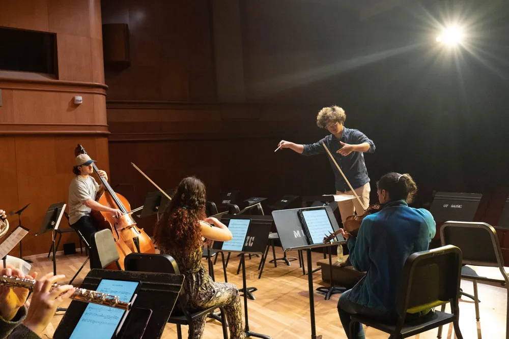 Zongheng Zhang conducting during a rehearsal of Le faucon