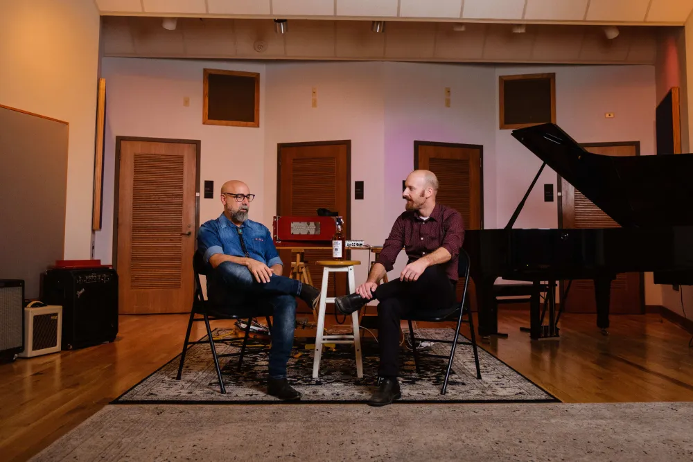 Butler School of Music Recording Services Manager Andrew Stoltz (left) and Composition Lecturer Russell Podgorsek (right). Photographer: Nathan Russell.
