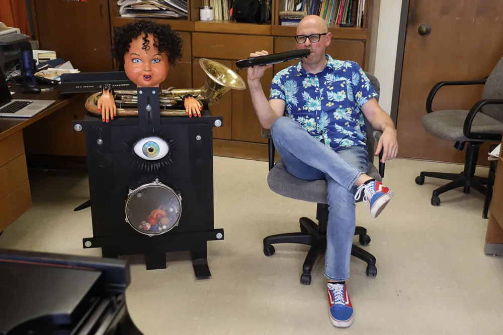 The faculty office corridors of UT’s Butler School of Music are lined with one shut door after another. But what might look uninviting to visitors is for good reason. From each room emanates a muffled cacophony of sounds – from piano, cello, or oboe, to computer-generated beats and digital distortions – that make up the diverse sound of contemporary music research.